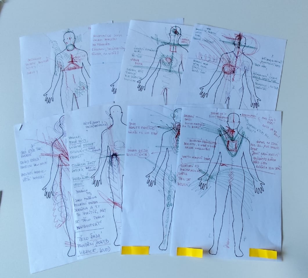 Následně vše ručně popisuji – co jednotlivá místa znamenají, jak spolu souvisí a jak s nimi můžete vědomě pracovat.